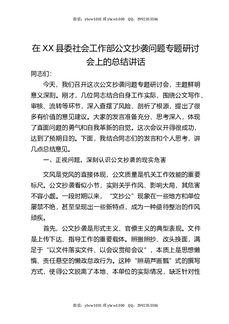 在XX县委社会工作部公文抄袭问题专题研讨会上的总结讲话.docx