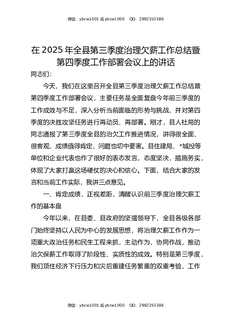 在2025年全县第三季度治理欠薪工作总结暨第四季度工作部署会议上的讲话.docx