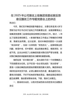在2025年公司落实上级集团党委巡察反馈意见整改工作专题党委会上的讲话.docx