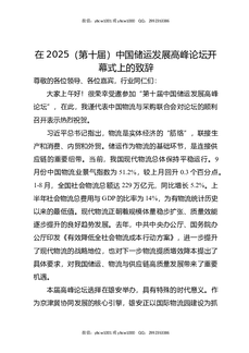 在2025(第十届)中国储运发展高峰论坛开幕式上的致辞.docx