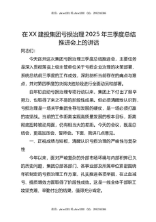 在XX建投集团亏损治理2025年三季度总结推进会上的讲话.docx