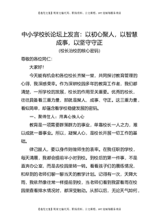 中小学校长论坛上发言:以初心聚人,以智慧成事,以坚守守正(校长治校的核心密码).docx