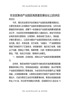在全区推动产业园区高质量发展会议上的讲话.docx