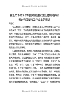 在全市2025年巩固拓展脱贫攻坚成果同乡村振兴有效衔接工作会上的讲话.docx