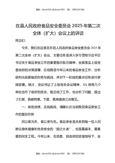 在县人民政府食品安全委员会2025年第二次全体扩大会议上的讲话.docx