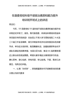在县委党校科级干部政治素质和能力提升培训班开班式上的讲话.docx