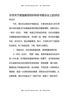 在市关于建强基层组织体系专题会议上的讲话.docx
