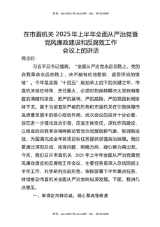 在市直机关2025年上半年全面从严治党暨党风廉政建设和反腐败工作会议上的讲话.docx