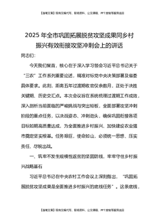 2025年全市巩固拓展脱贫攻坚成果同乡村振兴有效衔接攻坚冲刺会上的讲话.docx