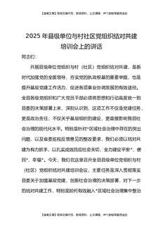 2025年县级单位与村社区党组织结对共建培训会上的讲话.docx