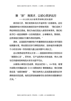 XX大学2025秋季开学典礼校长致辞:秉 “新” 育英才,以初心筑梦远方.docx