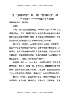 XX实验高中2025秋季校长开学典礼致辞:扬 “崇德励志” 风,攀 “鹰城名校” 峰.docx