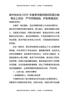 高中校长在2025 年春季学期师德师风警示教育会上讲话:严守师德底线,护航青春成长.docx