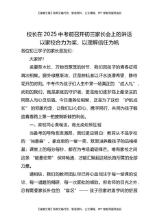 校长在2025中考前召开初三家长会上的讲话:以家校合力为桨,以理解信任为帆.docx