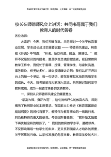 校长在师德师风会上讲话:共同书写属于我们教育人的时代答卷.docx