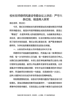 校长在师德师风建设专题会议上讲话:严守六条红线,锻造育人铁军.docx