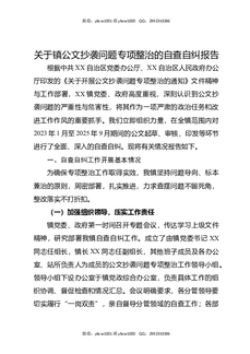 关于镇公文抄袭问题专项整治的自查自纠报告.docx