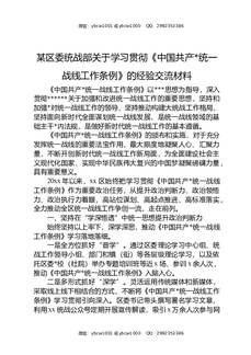 某区委统战部关于学习贯彻《中国共产党统一战线工作条例》的经验交流材料.docx