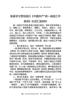 某县学习贯彻践行《中国共产党统一战线工作条例》交流汇报材料.docx