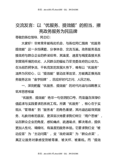 交流发言:以“优服务、提效能”的担当,擦亮政务服务为民品牌.docx
