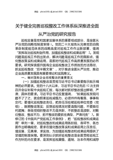 关于健全完善巡视整改工作体系纵深推进全面从严治党的研究报告.docx