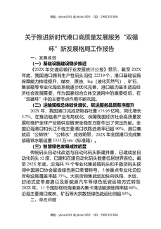 关于推进新时代港口高质量发展服务“双循环”新发展格局工作报告.docx