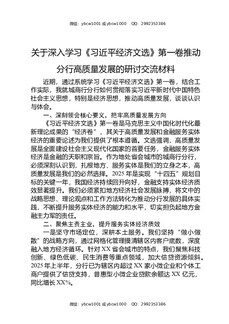 关于深入学习《习近平经济文选》第一卷推动分行高质量发展的研讨交流材料.docx