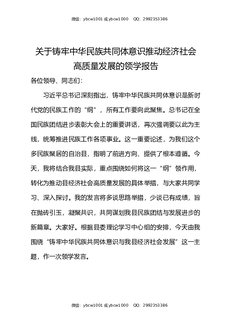 关于铸牢中华民族共同体意识推动经济社会高质量发展的领学报告.docx