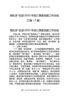 局机关党支部2025年前三季度党建工作总结(7篇).docx