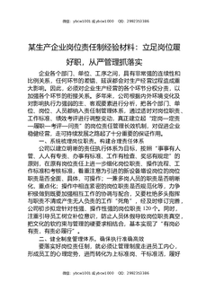 某生产企业岗位责任制经验材料:立足岗位履好职,从严管理抓落实.docx
