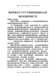 集团党委关于2025年党建品牌创建与业务融合发展的专题汇报.docx