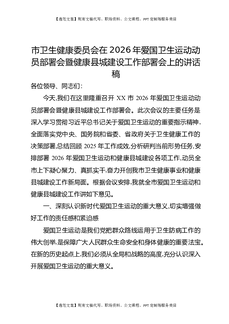 市卫生健康委员会在2026年爱国卫生运动动员部署会暨健康县城建设工作部署会上的讲话稿.docx