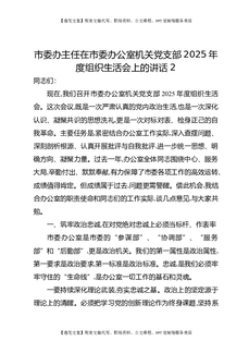 市委办主任在市委办公室机关党支部2025年度组织生活会上的讲话2.docx