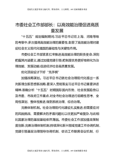 市委社会工作部部长:以高效能治理促进高质量发展.docx