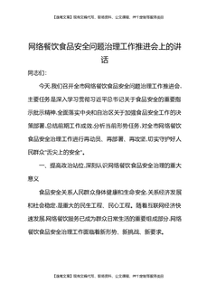 网络餐饮食品安全问题治理工作推进会上的讲话.docx