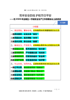 2026.4.20(写作模板)(在2026年全镇五一节前安全生产工作部署会议上的讲话)筑牢安全防线 护航节日平安