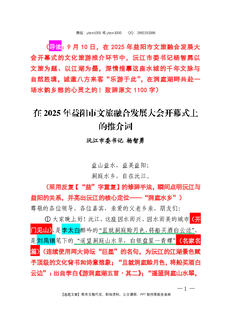 2025.9.26(文章剖析)在2025年益阳市文旅融合发展大会开幕式上的推介词