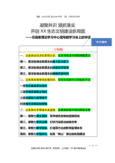 2025.9.27(写作模板)(在县委理论学习中心组专题学习会上的讲话)凝聚共识 狠抓落实 开创XX生态文明建设新局面