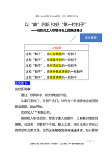 2025.9.28(写作模板)(在新员工入职培训会上的廉政讲话)以“廉”启新 扣好“第一粒扣子”