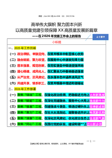 2026.2.12(写作模板)(在2026年党委工作会上的报告)高举伟大旗帜 聚力固本兴新 以高质量党建引领保障XX高质量发展新篇章
