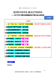 2026.2.10(写作模板)(在2026年春节放假前机关干部大会上的讲话)恪尽职守保平安 廉洁过节树新风