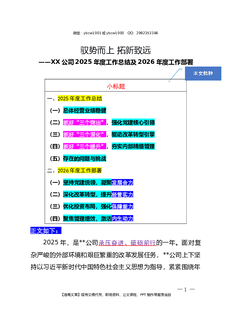 2025.11.6(写作模板)(XX公司2025年度工作总结及2026年度工作部署)驭势而上 拓新致远