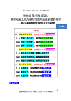 2025.12.12(写作模板)(2025年度基层党支部领导班子工作总结)铸忠诚 强担当 践初心 在新征程上续写基层党建高质量发展新篇章