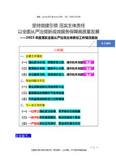 2025.12.4(写作模板)(2025年度落实全面从严治党主体责任工作情况报告)坚持党建引领 压实主体责任 以全面从严治党新成效服务保障高质量发展