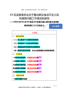2025.12.11(写作模板)XX区监察委员会关于整治群众身边不正之风和腐败问题工作情况的报告