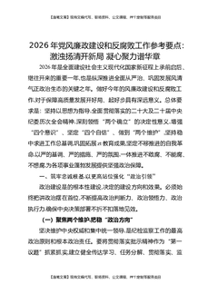 2026年党风廉政建设和反腐败工作参考要点:激浊扬清开新局,凝心聚力谱华章.docx