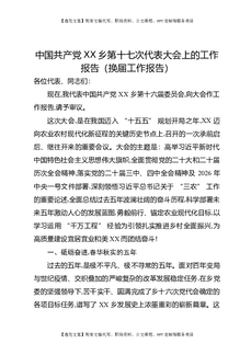 中国共产党XX乡第十七次代表大会上的工作报告(换届工作报告).docx