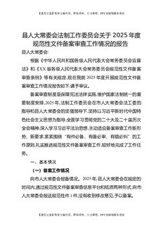 县人大常委会法制工作委员会关于2025年度规范性文件备案审查工作情况的报告.docx