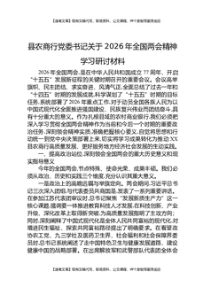 县农商行党委书记关于2026年全国两会精神学习研讨材料.docx