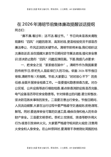 在2026年清明节前集体廉政提醒谈话提纲.docx